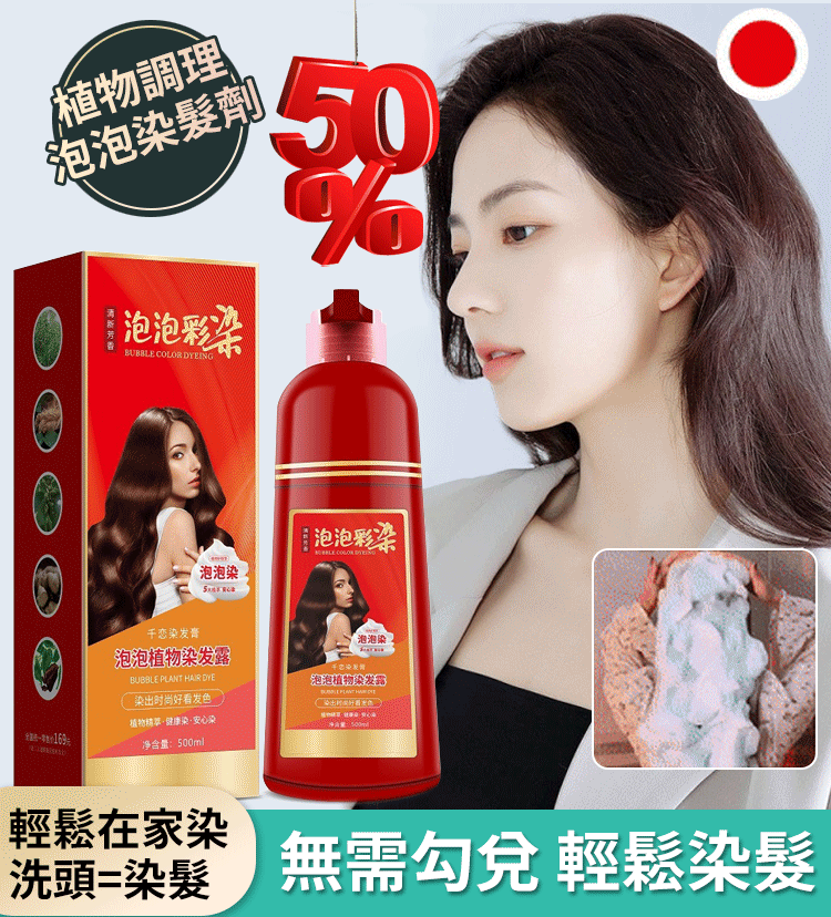 25分鐘前大紅瓶親膚溫和泡泡染髮 - 【熱銷精選】買1送1★$899(低至449/入)